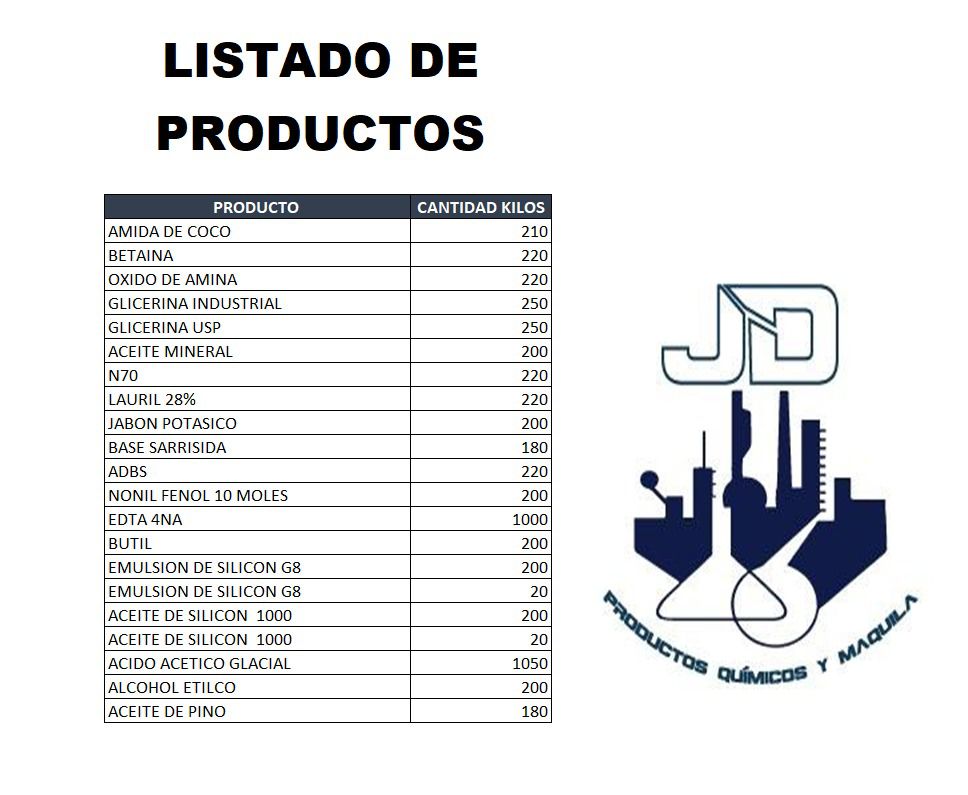 JD Productos Químicos y Maquilas Industriales somos una empresa dedicada a la fabricación, venta y maquila de productos químicos para distintas industrias. Ofrecemos soluciones confiables, seguras y personalizadas, desarrolladas bajo estrictos estándares de calidad y normatividad. Atendemos proyectos a nivel nacional, apoyando el crecimiento de nuestros clientes mediante innovación constante, asesoría técnica y acompañamiento profesional.